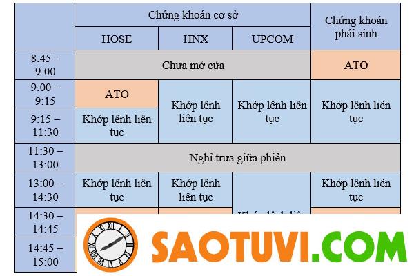 Thời gian giao dịch cụ thể như sau:
