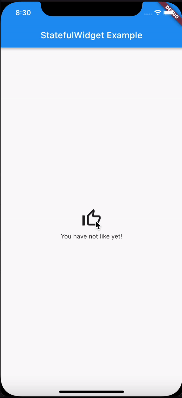 Nghe hơi mơ hồ phải không? Mình ví dụ như nút like của facebook. Khi user bấm like thì nó sẽ đổi thành màu xanh phải không? Và khi user click thêm một lần nữa thì nó chuyển lại màu xám. Đó chính xác là một stateful widget.